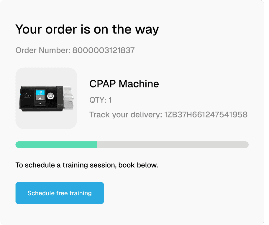 Alert patients to reorder essentials like CPAP masks, catheters, or test strips. Benefits: Prevents shortages, reinforces therapy compliance, and drives consistent revenue.